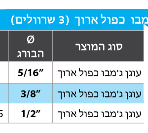 | מידה | 3.5/16 ממ, 3.5/18 ממ, 3.5/30 ממ, 3.5/40 ממ, 4/16 ממ, 4/18 ממ, 4/20 ממ, 4/25 ממ, 4/30 ממ, 4/35 ממ, 4/40 ממ, 4/45 ממ, 4/50 ממ, 4/60 ממ, 4/70 ממ, 5/100 ממ, 5/120 ממ, 5/20 ממ, 5/25 ממ, 5/30 ממ, 5/40 ממ, 5/50 ממ, 5/60 ממ, 5/70 ממ, 5/80 ממ, 5/90 ממ, 6/150 ממ |